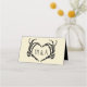Adicione um toque assustador e personalizado ao seu casamento com estes cartões de lugar. Estes cartazes dobrados são creme ou marfim. Na frente estão as linhas de vazios para que você escreva no nome de cada convidado e no número da tabela. No verso está uma ilustração das mãos do esqueleto em forma de coração moldando as primeiras iniciais da noiva e do noivo. O gráfico e o texto estão em preto. O estilo macabro é perfeito para casamentos de outubro ou eventos com tema de gótico.