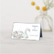 Estas placas de mesa apresentam um buquê bonito de rosas brancas e azuis de aquarela de um lado, e um nadador branco elegante ao lado de um buquê de flores do outro lado. As imagens são colocadas sobre um fundo branco, e seu texto personalizado está em azul escuro correspondente em cada lado. A parte traseira da placa está azul correspondente. Estes cartões combinam com o Swan Floral Branco sobre Convites de Casamento Azul e outros produtos de casamento na nossa loja.