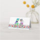 Traga a diversão do casamento de dinossauros para as suas mesas com esta noiva judaica e noiva Jurássica T-Rex única num cartão pré-histórico de mesa de prados de flores silvestres. A tipografia química moderna com espaço para o nome dos convidados manuscritos e o número da mesa. Noivas Rex, únicas e castanhas, de Tyrannosaurus Rex, noivas e noivos com flores silvestres de cor d'água, em tons roxos, cor-de-rosa, cor-de-rosa azul, e matizes originais, da artista Catherine Sweetman Ideal para a recepção do dia do casamento ou janto de ensaio. A suíte de casamento combinando inclui tudo que você precisará na sua divertida viagem de casamento
