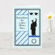 Cartão de parabéns para o seu filho que acabou de se formar com os Mestrados. O design tem riscado o azul no lado esquerdo do cartão com uma redação permanente. O lado direito tem um formando com um boné e um vestido segurando um grau. O cartão é azul com cor azul clara e silhuetas pretas. A design também tem dois bonés, e uma coroa. Obrigados à hungryjpeg para alguns dos elementos da design.