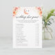 O Cartão de Monograma do Jogo do Sapato de Noiva com Flor de Pêssego Elegante apresenta um design moderno perfeito para um jogo de casamento divertido e memorável. Adornado com flores silvestres em aquarela delicada em tons suaves de pêssego, este cartão exibe as iniciais dos noivos em um monograma elegante. Ideal para casamentos de outono, adiciona um toque de sofisticação ao seu dia especial.