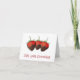 Três morangos representando bem humorados "Live, Love, Chocolate". Um bom cartão para o Dia de os namorados.
