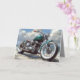 Cartão comemorativo com pintura de uma motocicleta contra um fundo de montanha. Ideal como aniversário, aniversário, Dia de os pais ou cartão de aposentação para entusiastas de motocicletas, mas também funcionaria bem para outras expressões ou ocasiões. Personalize este cartão com o seu próprio dentro de mensagem.