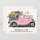 Diga aos seus amigos e familiares que você mudou com este cartão de anúncio inspirado na mudança do orçamento do endereço. O design apresenta um caminhão de picape cor-de-rosa retrô com mobília no fundo. Acima dele se lê "Eu me Movi" e abaixo está seu nome e endereço para personalizar. Além disso, no verso do cartão está uma mensagem com a sua assinatura acentuada por um ícone de caminhão vintage. Projetado apenas para você pelo artista mundialmente renomado ©Tim Coffey.