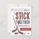 Os Namorados da sala de aula do tema legal do hóquei apresentam um "bastão de vamos junto" com um par de bastões de hóquei vermelho e preto e um disco. Personalize com o nome do seu filho na parte inferior. Espaço fornecido no topo para os nomes de destinatários do escrevendo.