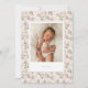 Uma bela rosa rosa, um cartão de nascimento floral de menina apresentando um grande espaço fotográfico para mostrar seu recém-nascido. O delicado padrão de rosa e tons pastéis suaves criam um aspecto eterno, romântico, perfeito para apresentar seu bebê à família e aos amigos. Personalize com o nome do seu bebê e os detalhes para uma manutenção que pode ser preciosa para sempre. Ideal para envio de correio ou compartilhamento digital.
