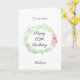 Um laurel de aquarela e flores cor-de-rosa personalizados Happy 65th Birthday card, que você poderá facilmente personalizar a frente com o nome dela. A mensagem dentro deste bonito cartão de aniversário de 65 anos lê uma mensagem sincera, que você também pode personalizar se quiser. As costas têm o mesmo louros de aquarela com flores cor-de-rosa com um lugar para você colocar ano. Isso faria uma gentil manutenção personalizada para ela.