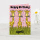 girafas bonitas fazem este cartão de aniversário divertido. Personalizável para que você possa adicionar seu próprio texto e alterar a cor do plano de fundo.