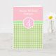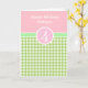 Cartão de Nascimento Rosa e Verde Gingham 4º