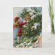 Desenhado por Susan Epps Oliver. Imagem vítrea de Papai Noel e um pequeno anjo com cabeça de Papai noel maravilhosamente decorada com névoa.