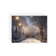 Árvore beijada de neve e estrada sob um céu. Flocos de neve caídos tecem uma tranquila noite de inverno. Ideal para cartões de Natal. Abraça a magia da estação com esta cena encantadora.