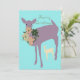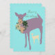Cartão de Natal com desenho de cervo e grinalda. As palavras no verso são personalizáveis.
