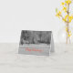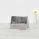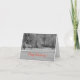 Cartão de Natal com um lago congelado e árvores estéreis. Foto preta e branca com impressão vermelho.