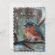 Cartão de Natal de um adorável passarinho azul. O design nesta impressão é de um adorável pássaro azul de inverno é uma peça de mídia mista. Perfeito para os amantes da natureza e dos pássaros! Esta obra de arte também está disponível em outros produtos para combinar! Arte por Jennifer Steffen.