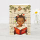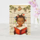Cartão de Natal Afro-Americano Antigo. Jovem garota afro-americana cantando no coral em frente a partitura. Adicione seu próprio verso para torná-lo mais pessoal.