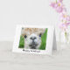 Cartão dobrado com uma fotografia fofa de uma alpaca na frente com o texto "feriados felizes". Na dentro, o texto "do nosso rebanho para o seu..." Do "seu nome". Personalize com o seu texto.