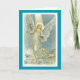 Linda imagem de vintage do anjo em um feixe de luz. Abaixo, no antigo roteiro "Desejar Felicidade de Natal". As cores são brancas, turquesas e bronzeadas.