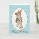Trabalho de arte de uma menina anjinha, com asas cor-de-rosa e roupa de inverno com pelo vestida, colocada sobre um fundo oval creme. O quadro do cartão é feito em um azul-marino com padrão bonito, com Holidays Felizes no texto do script do rico na parte inferior e o dentro de saudação é totalmente personalizável. Personalize esta bela carta para si.