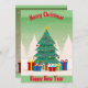 Cartão Sazonal de Feliz Natal e Ano Novo com Árvore Verde e Presentes