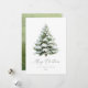Compartilhe a beleza da estação com este elegante cartão de Natal apresentando uma única árvore de pinheiro nevada contra um suave fundo de aquarela verde. A fonte de letra cursiva delicada adiciona um toque atemporal e gracioso - perfeito para enviar votos sinceros para familiares e amigos. Este design minimalista, mas festivo, traz um toque de natureza e sofisticação para os seus cumprimentos de Natal. Personalize com o nome da sua família e o ano para um presente personalizado que captura o espírito tranquilo do inverno.