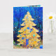 Este Cartão de Natal é feito usando programação de inteligência artificial e minhas palavras para criar um cartão de cumprimentos no estilo de Gustav Klimt. Eu amo as decorações douradas e coloridas nas árvores. Cada lado do cartão tem uma árvore de Natal diferente.