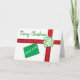 Design de cartão de Natal retrata o presente embrulhado com fitas e arcos. Use o texto dentro fornecido ou substitua-o por suas próprias palavras. Personalize este cartão com as suas próprias palavras e saudação.