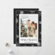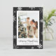 Cartão de Natal preto com flocos de neve com flocos de neve em fundo preto de neve. Personalize facilmente este cartão fotográfico de Natal com a sua fotografia e o seu nome familiar.