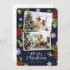 Foto azul Cartão Feliz de Natal com flocos de neve e groselha com bagas em fundo azul. Personalize facilmente este cartão de feriado fotográfico com as suas fotografias e texto.