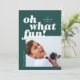 Este cartão de feriado apresenta uma mensagem "oh o que é divertido" e cores modernas para uma atualização do cartão de férias tradicional. Adicione uma mensagem mais longa e uma foto adicional ao verso, se quiser!