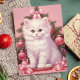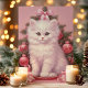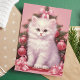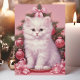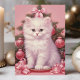 Mande desejos festivos com este charmoso cartão de férias com um gatinho branco doce, enfiado em frente a uma árvore de Natal cor-de-rosa. Perfeito para amantes de gatos e para aqueles que desfrutam de um toque de chorona, esta carta combina espírito de feriado com uma paleta única de cor rosa e branca. Aprecie amigos e família com esta adorável e acolhedora saudação.