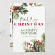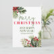 Cartão de Natal Branco da Photo Holly e Pine Red Berries com um belo spray de bagas ocas, vermelhas e pinheiro no convite de festas para uma festa festiva de Férias.