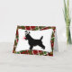 Diversão do Cairn Terrier Card tem uma silhueta de raça canina, com chifres de renas e um nariz vermelho brilhante brilhando. O fundo é uma xadrez de férias animada com vermelhos e verdes. O dentro diz: "Desejando a você e a sua família uma época de férias maravilhosa!" Personalize a mensagem para você. Cachorro bonito amava cartões de Natal.