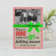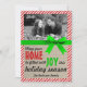 Um cartão de Natal brilhante e alegre ou um cartão de férias! Possui uma borda vermelha e branca de cana-de-açúcar listrada, inspirada por uma faixa verde brilhante e um fundo sutil de burlap. Personalize com a sua própria imagem da família!