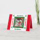 Eu projetei este cartão usando minha própria fotografia… isso de um homem cardinal do norte que senta-se em um ramo coberto de neve. Eu adicionei um fundo do vermelho para misturar-se com o design total do vermelho e do verde. As características internas um fundo vermelho com texto branco e um verso que do Natal você pode personalizar.