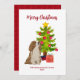 Cartão de Natal do Rei Cavalier Charles Spaniel, bonito, com árvore de Natal e presente. Personalize com seu texto.