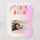 Cartão de Natal com cumprimento cor-de-rosa alegre