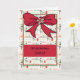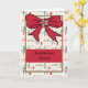 Cartão de Natal para crianças com pequenos elfos, um grande arco vermelho e fronteiras vermelhas e verdes. Obrigados para a Creative Fabrica para alguns dos elementos na design.