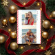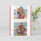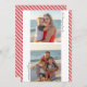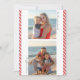 Um cartão de imagem de Natal clássico com uma abordagem moderna. Este cartão apresenta dois espaços para imagens alinhados às bordas superior e inferior, com uma borda fina de faixa de bastão de doces à direita e à esquerda. O verso do cartão continua o tema com um padrão de faixa de bastão de doces em vermelho e branco. Duas caixas de texto verticais acompanham as imagens. Customize com sua mensagem e nome.