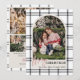 Este cartão de Natal apresenta uma foto arqueada na frente e 3 fotos no verso. Para este design, "Feliz Natal" não é editável, mas todo o restante do texto pode ser personalizado.