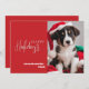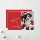 Este cartão de Natal com foto de pet fofo apresenta uma citação engraçada "Estou na lista dos bons... acho", em um fundo vermelho. A foto e o texto podem ser personalizados usando as ferramentas de design.