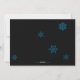 Um cartão de Natal não-denominacional com flocos de neve azúis e brancos, a palavra "Neve" e uma janela de foto circular contra um fundo preto.