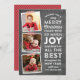 Espalhe a alegria neste feriado com este cartão de Natal multifotográfico com fundo de quadro e sotaques vermelhos e brancos festivos.