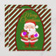 Este cartão de Natal desenhado à mão tem um Papai Noel alegre com biscoitos e cacau, emoldurado em listras de bengala de Natal e cores natalinas aconchegantes. Personalize a parte inferior com o nome da família ou da empresa para torná-lo seu. Coloque sua própria mensagem no verso. Ótimo para presentes de adolescentes ou correspondência de Natal com personalidade.