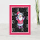 Cartão de Natal com Papais noeis ilustrados sorridentes num Ho preto, neve, Ho, Ho, fundo e uma borda rosa quente. Obrigados para Creative Fabrica e Hungryjpeg para alguns dos elementos do design.