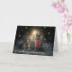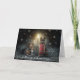 dois pastores alemães usando cachecóis de inverno com uma lanterna desejando um feliz natal.