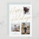 Este cartão de Natal de foto casual, mas elegante, apresenta três fotos e lê "Felizes Festas" em uma fonte de script em folha de ouro falso.