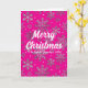 Cartão de Natal cor-de-rosa na moda com flocos de