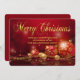 Red and gold Cartão de Natal corporativo com ouro Roteiro de Feliz Natal em um belo ornamento vermelho e dourado de árvore de Natal, floco de neve de ouro e fundo de pérolas. Este belo cartão de Natal vermelho e dourado é facilmente personalizado simplesmente adicionando sua mensagem e logotipo no estilo de fonte e na cor de sua escolha.