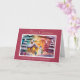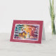 Cartão de Natal Whimsical com design de papel cortado com crianças fazer um boneco de neve em frente à sua casa.
