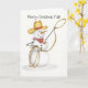 Este cartão de Natal apresenta uma pintura original de aquarela de Jayne Wilson, representando um bonitinho bonitinho de neve com chapéu de cowboy e bandana, com uma estrela de ouro no peito, pronto para arredar uma alegria de Natal com seu laser! A saudação "Feliz Natal Y'all" está centrada acima.